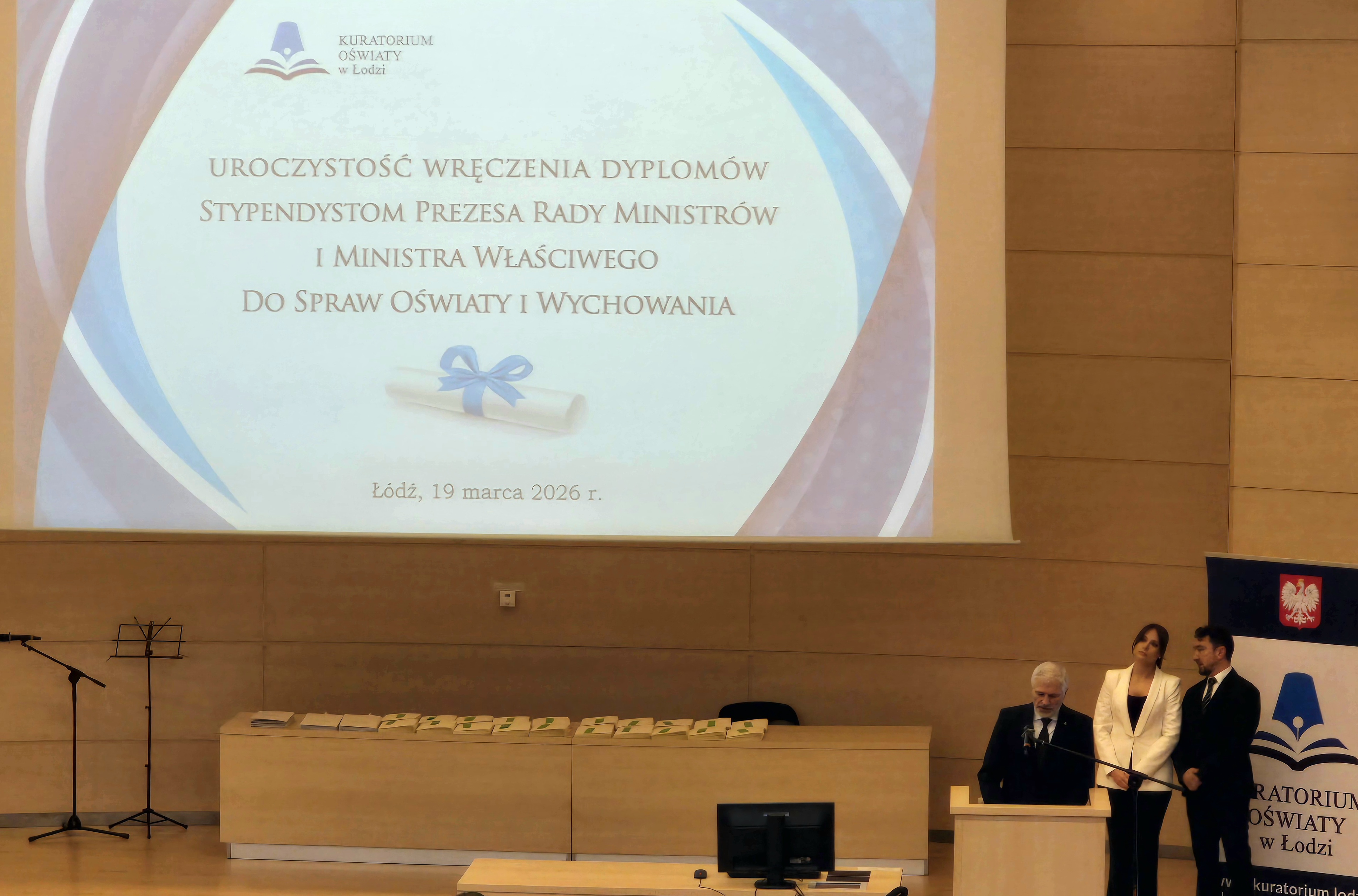 Dumni Informujemy, że Oliwia uczennica klasy 3F odebrała dziś z rąk Łódzkiego Kuratora Oświaty – Pana Janusza Brzozowskiego i Wojewody Łódzkiego – Pani Doroty Ryl, dyplom za uzyskanie Stypendium Prezesa Rady Ministrów za wyniki w nauce. Gratulujemy i życzymy dalszych sukcesów.